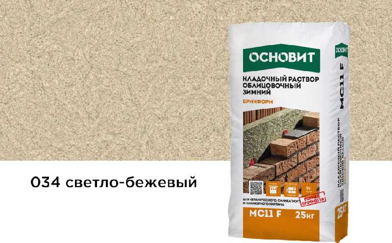 Кладочный раствор ОСНОВИТ БРИКФОРМ МС11 F зимний предназначен для кладки стен из облицовочного кирпича с водопоглощением до 12% с возможностью расшивки швов в момент укладки при температуре окружающей среды и основания от -10 до + 10°С.
