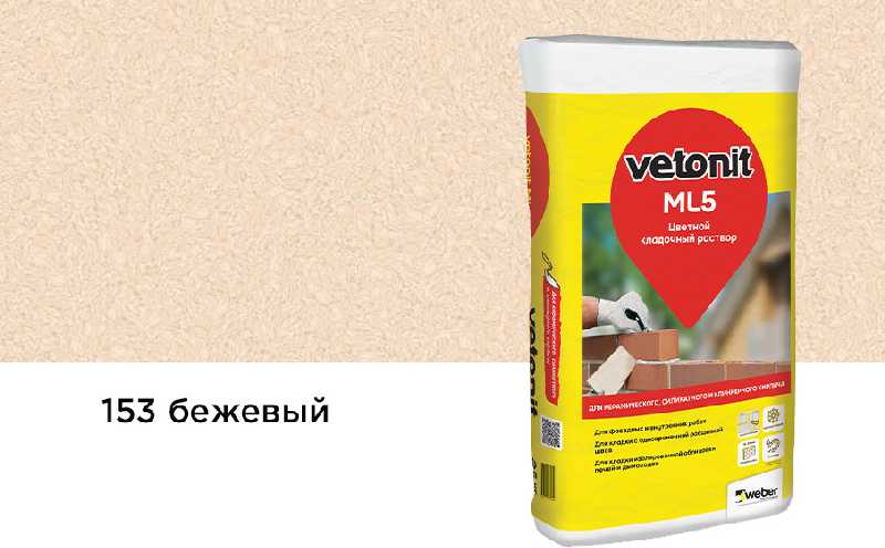 Цветной раствор weber.vetonit МЛ5 зимний (weber.vetonit ML 5 winter) №153 Марес, бежевый, предназначен для достижения оттенка шва, подходящего к цвету кирпичной кладки.