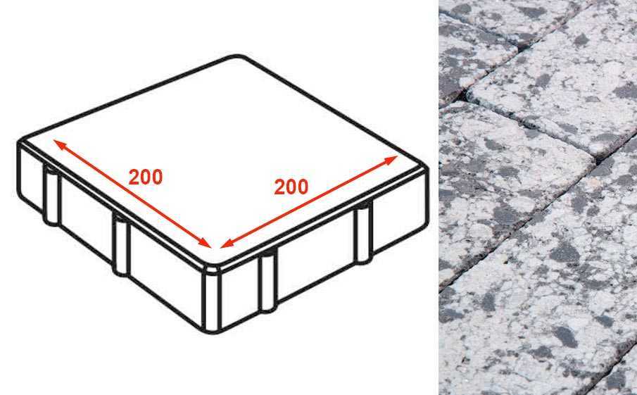 Плита тротуарная Готика Granite FINERRO, квадрат, Диорит 200х200х80 мм